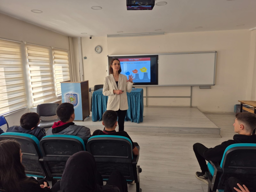 Okulumuzda 9. sınıf öğrencilerine yönelik okul rehberlik servisi tarafından verimli ders çalışma semineri gerçekleştirildi. Seminerde, öğrencilerin ders çalışma alışkanlıklarını geliştirmelerine ve zamanı daha etkili kullanmalarına yönelik pratik yöntemler paylaşıldı. Öğrenciler, motivasyonlarını artıracak stratejiler ve sınavlara hazırlık sürecinde uygulayabilecekleri teknikler hakkında bilgilendirildi. Seminer, öğrencilerimizin akademik başarılarını desteklemeyi ve öğrenme süreçlerini daha verimli hâle getirmeyi hedefledi.